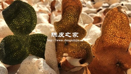 青皮:農歷立秋至寒露這段時間內采摘的陳皮,叫做青皮,因為成熟度低,還沒有上色,青皮的顏色為靑褐色甚至青黑色。