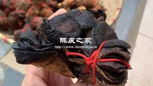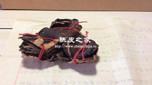 這種用紅色繩子捆綁的陳皮也被叫做扎皮,用一根紅繩將陳皮的三邊捆綁起來是為了方便華僑或者所在地較遠的人攜帶而產生的。