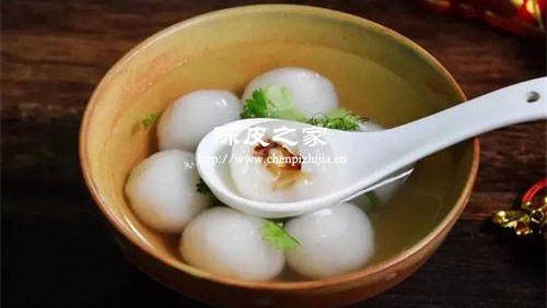 無論南方還是北方,在超市或者門面店里售賣的湯圓大部分都是甜口的,但是五邑風味的湯圓確實獨特有好吃的咸口湯圓。里甜外咸、湯底咸鮮、濃香十足。另外,因為五邑咸湯圓的內陷還是黃糖的,吃起來難免還是會有一些膩膩的感覺,所以加入了清爽解膩的新會陳皮絲,讓整到菜品達到一個甜而不膩、濃香十足的新境界。