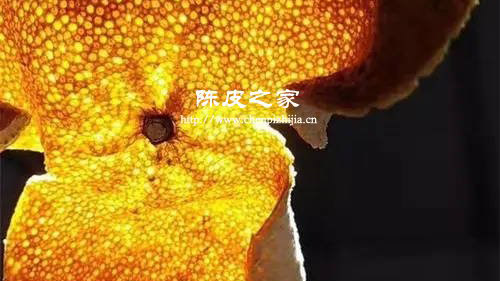 通過手電筒照陳皮,我們能夠看清陳皮油包情況,好的陳皮油包很多又密,大小比較均勻,這是屬于比較好的陳皮狀態(tài)。