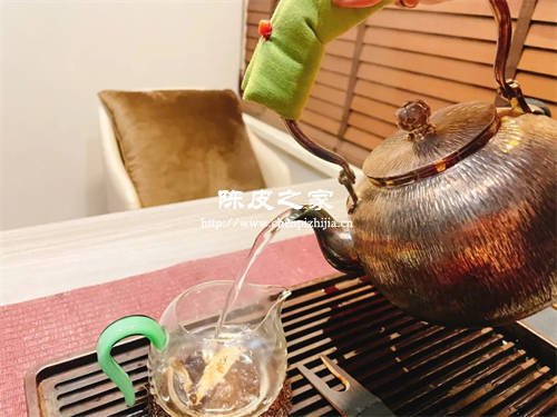 煮陳皮用開水和冷水對陳皮的茶湯口感是有影響的,雖然經過了醒皮,但是第一次煮的陳皮如果用冷水直接下水,在陳皮逐漸舒展和釋放的過程中,陳皮中的苦澀都會釋放出來,這樣口感不會太好。所以第一次煮陳皮的水用開水會改善陳皮的口感,不那么苦澀。