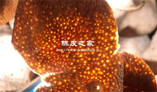 尤其是完全成熟的新會陳皮上的油包,油包越大、越多且紅,則表示陳皮的檔次越高,品質越好,因為油包中含有揮發油、黃酮類化合物等豐富的內含物。