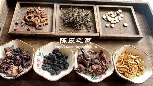 桑葚有清熱解毒、滋陰潤(rùn)肺的功效;甘草有扶正固本、益氣養(yǎng)血的作用;陳皮是曬干的柑橘皮,有理氣消食的功效;菊花有清肝明目、平肝降壓的作用。