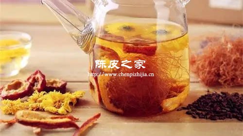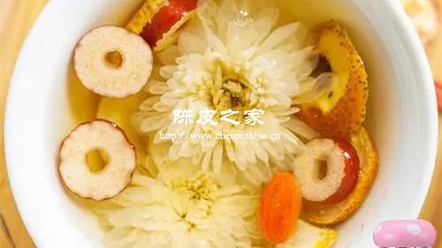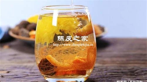 做法:將杞子、菊花和陳皮放入茶壺中,加入1000ml的開水,浸泡20分鐘左右,即可飲用。