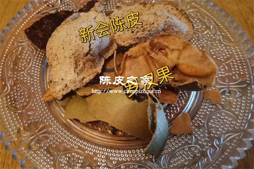 2、將整個羅漢果掰成幾塊,將不花錢領取的新會陳皮整張的也掰開成幾塊,放在容器里面用溫水泡幾十秒鐘。