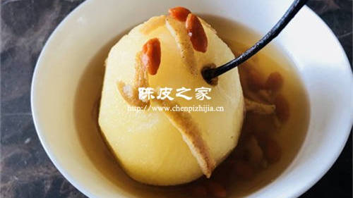 2、冰糖雪梨富含多種維生素,具有潤肺、止咳、清熱的功效;而陳皮則是溫性食物,具有理氣健脾、燥濕化痰、消炎的功效。
