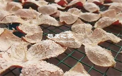把剝好的桔子皮白色內囊向上,放在通風有陽光地方完全晾曬干。