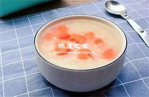 將陳皮和大米一起煮成粥,具有理氣健脾、降逆止嘔、燥濕化痰的功效,適用于改善腹脹噯氣、食欲不振、消化不良、胸膈滿悶、惡心嘔吐、寒痰濕痰、咳嗽痰多等癥。