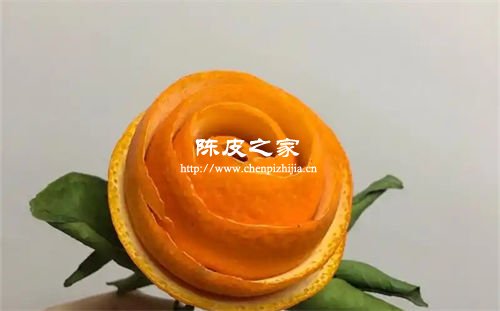 (2)將削出的橘子皮一點點卷起來,用膠水或針線固定,即可變成一個完美的橘子花。