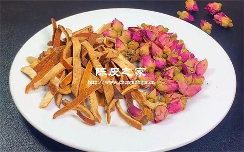 陳皮疏肝理氣,玫瑰花活血解郁,搭配后適合情緒壓力大、肝氣郁結導致的胸悶、月經不調,可調節(jié)氣血,舒緩情緒。